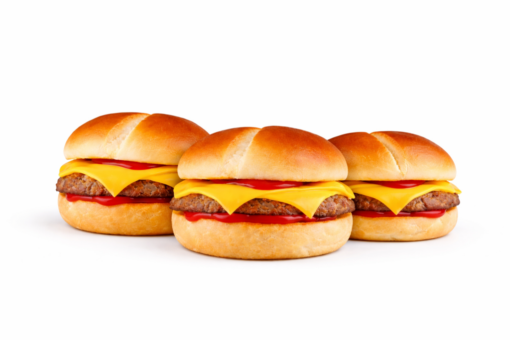 Two juicy Angus sliders, melted American cheese, Ketchup, fresh, and ready to satisfy.